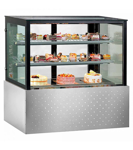 This impressive cake display has two levels of shelving, strong secop compressors for functionality, LED lighting to see inside the interior, self-evaporating drainage to remove moisture, digital temperature control, sliding glassed rear doors, triple glazed front with heated filaments – all encased within a stainless-steel framework.