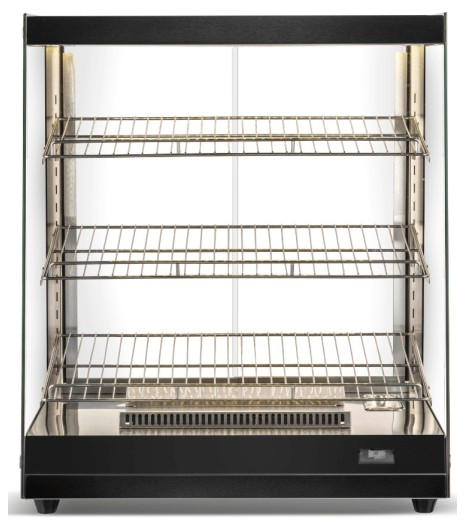 - 3 or 4 Shelving Tiers: Expansive area for a diverse food display