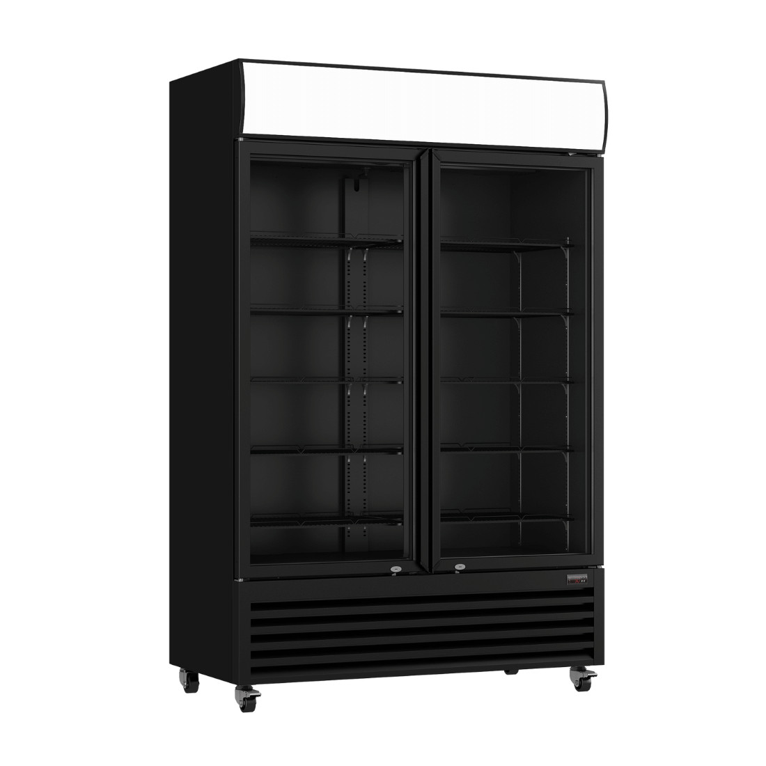 This powerful display fridge comes with a prominent decorative Black color, with a large 1200-litre space for storage that aims to keep your ingredients cool and refreshed. It features five levels of strong shelving, interior LED lighting, powerful embrace compressors, digital temperature control, fan-forced evaporator cooling, self-evaporating drainage, and double-glazed doors for extra toughness and optimal viewing.