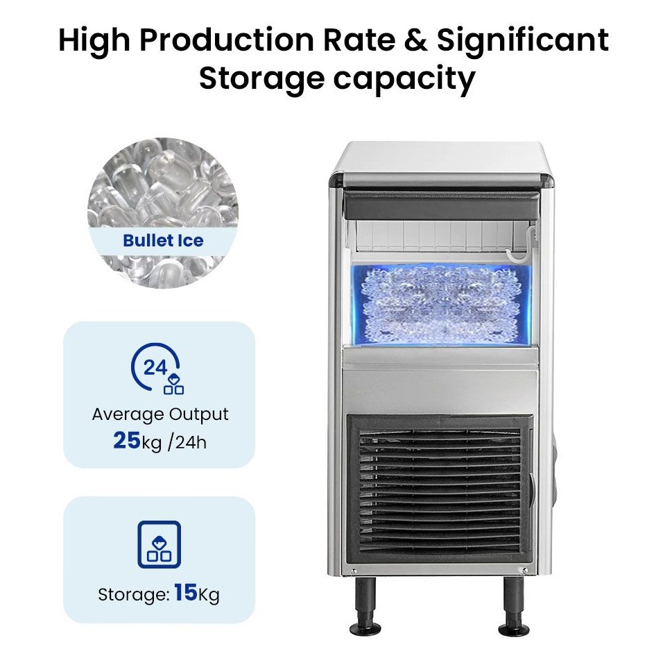 The Blizzard SN-25C Underbench Bullet Ice Maker delivers a powerful 25 kg of hard, crystal-clear bullet ice in every 24-hour cycle.