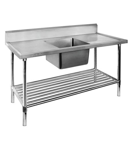 All Stainless Steel Single Centre Sink Bench & Pot Undershelf - SSB7-1800C/A