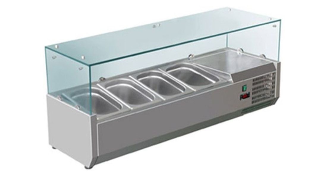 These Countertop Prep Fridges will ensure your fresh toppings are always within easy reach. Fits 4 x 1/3 GN Pans so your chilled ingredients will be stored hygienically until you’re ready to use them. Fitted with a Toughened Glass Canopy