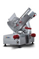 This semi-automatic gravity feed belt driven slicer is designed for volume cutting and features two independent motors, one for blade rotation and the other for carriage movement. The slicer can be used either manually or with automatic operation. In the automatic mode, 3 carriage movement lengths can be selected to suit the size of the product and three carriage speeds can be selected to suit the delicacy of food being sliced.