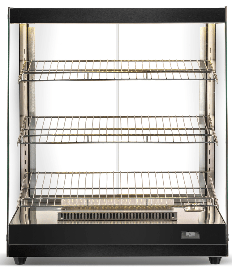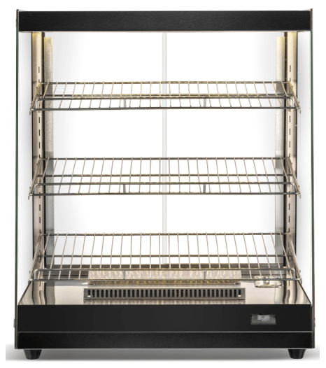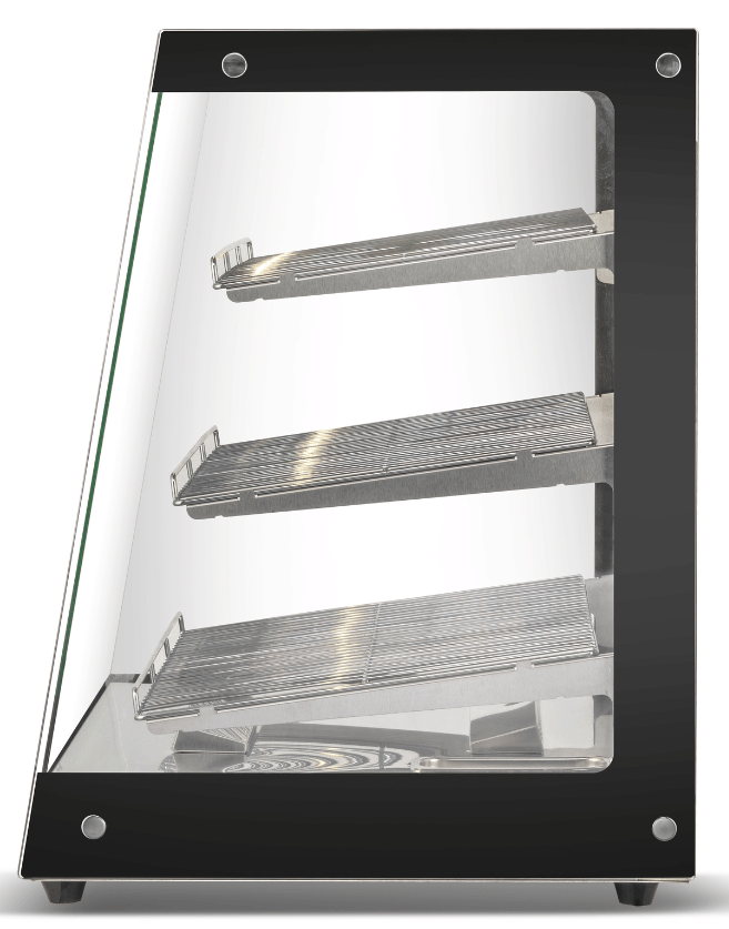 - 3 or 4 Shelving Tiers: Expansive area for a diverse food display