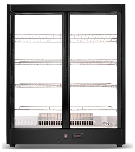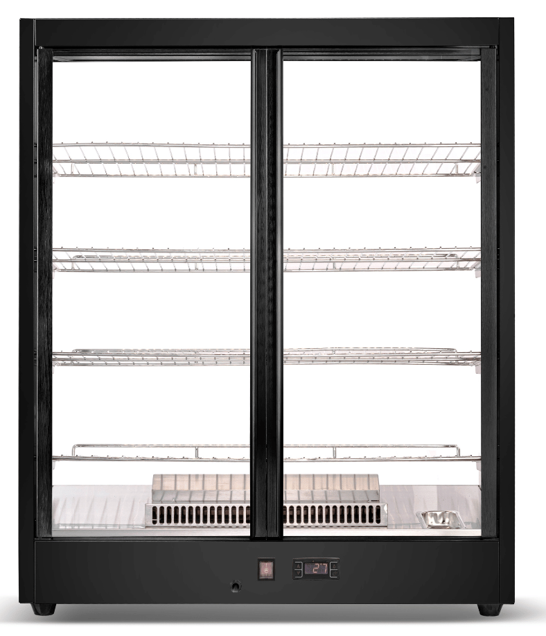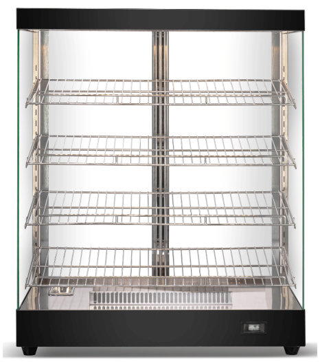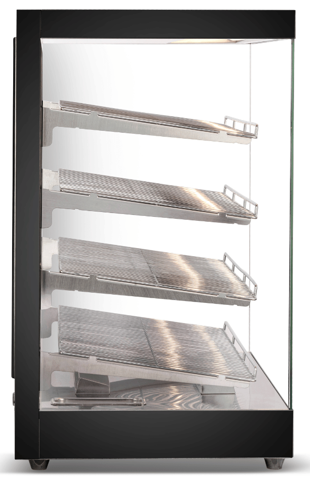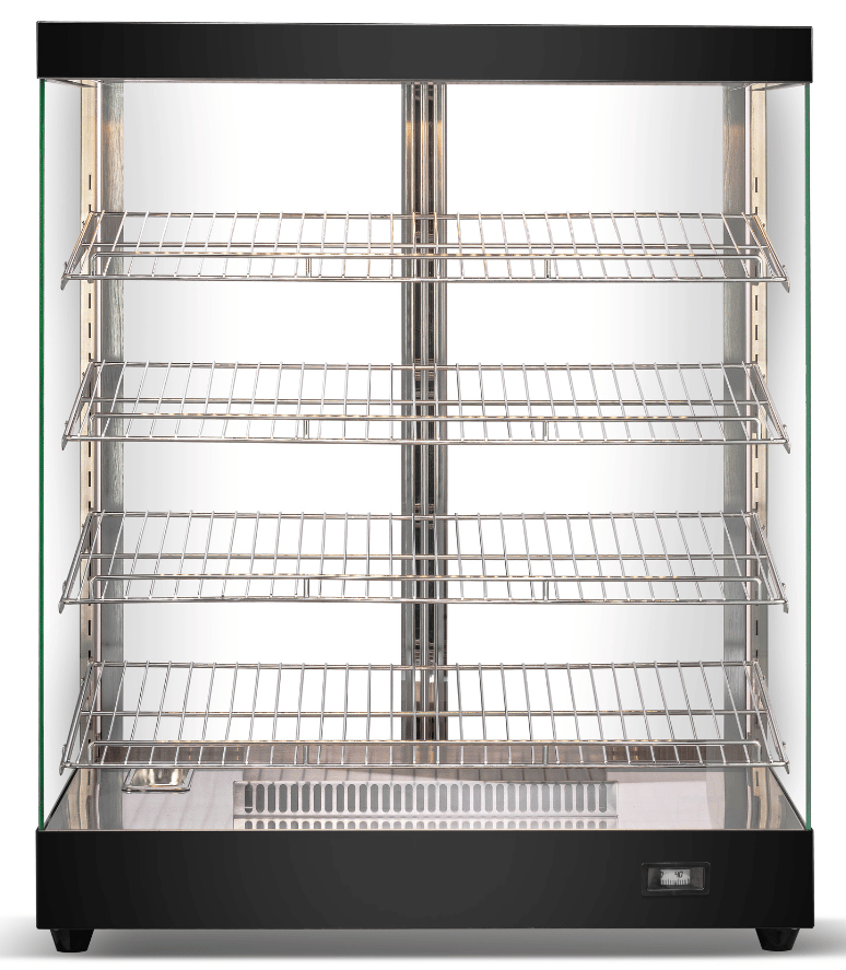 - 3 or 4 Shelving Tiers: Expansive area for a diverse food display