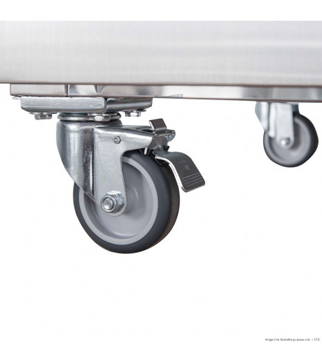 - Heavy duty castors with front wheel brakes