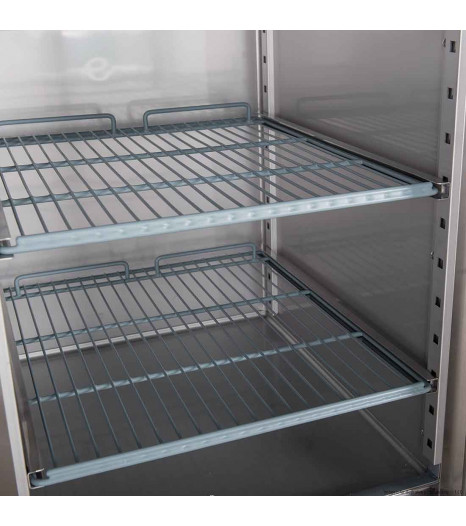 This two-door Commercial Upright Freezer is a reliable and great performing choice for any Restaurant, Cafe, Bakery or Commercial Kitchen. Features 5 tier adjustable shelves, 1200 litre storage capacity and is made from stainless steel. Robust Magnetic Steel doors.