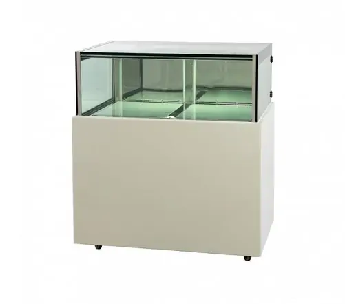 This Refrigerated Chocolate display case is an ideal choice for displaying chocolates and bakery products. This unit features straight double heated glass, ultra clear glass canopy, mirrored glass doors and LED lighting while stylishly finished in white marble.