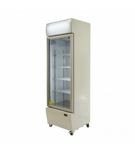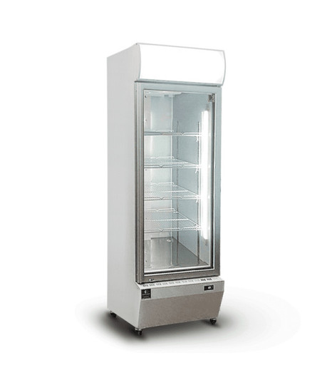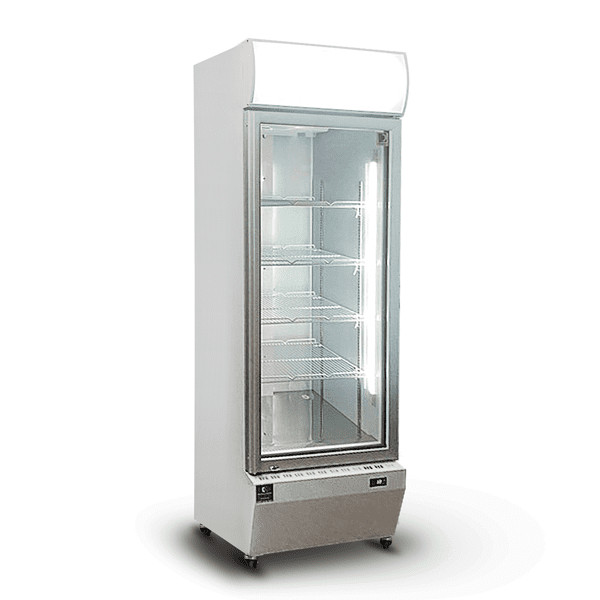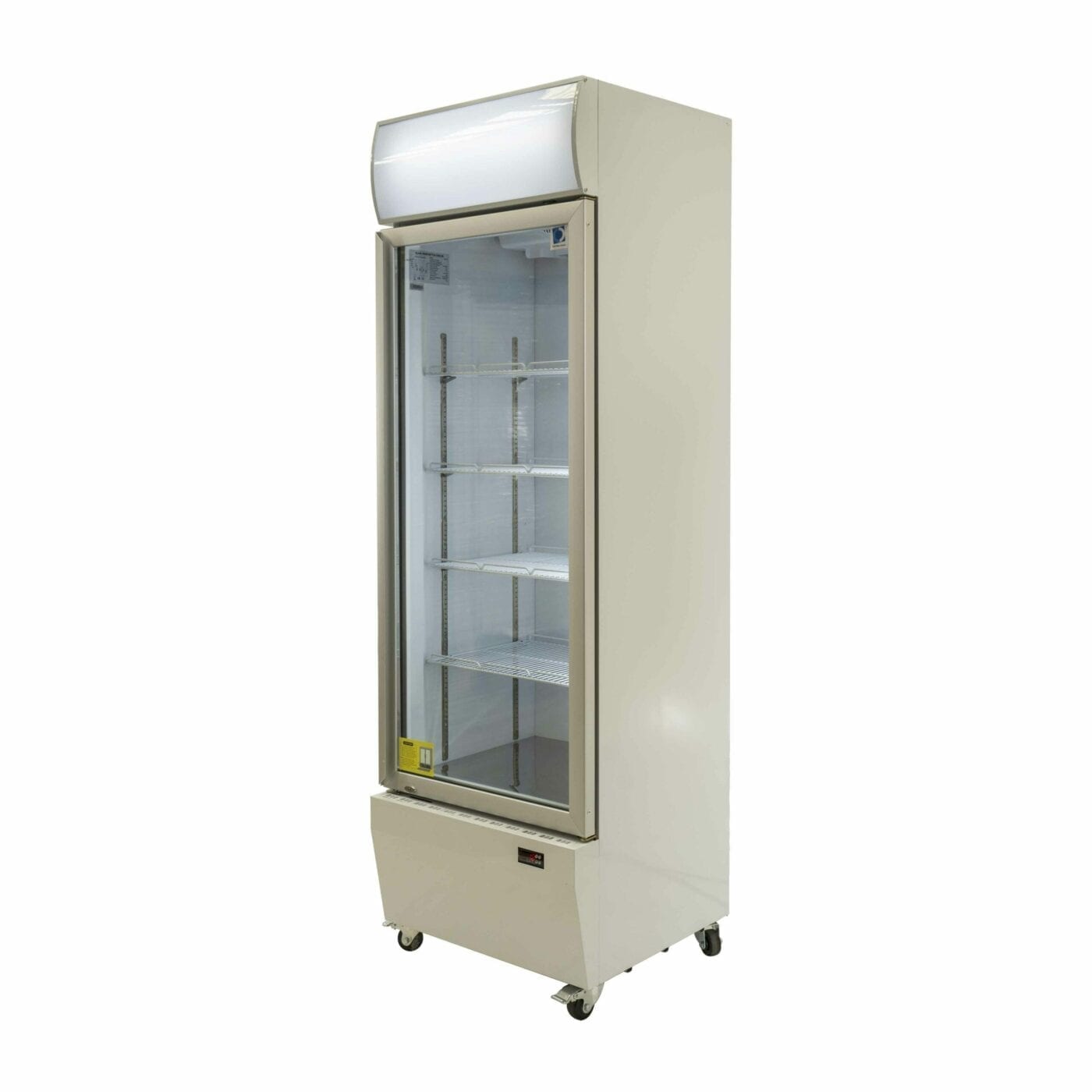 Single Door Display Fridge features a wide glass frontage for maximum product visibility.