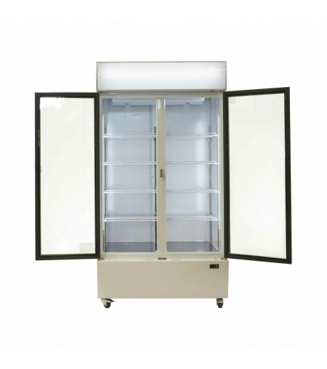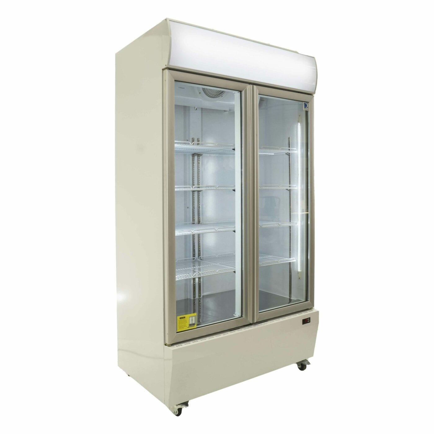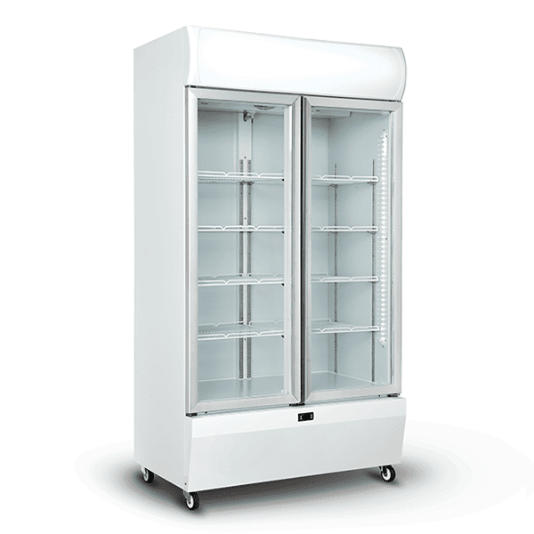 This 1000 litre double-door display fridge offers more than enough space for the attractive storage and merchandising of bottles, cans, and chilled foods. Ideally suited for bars, pubs, convenience shops and canteens, this fridge features an illuminated display panel that can accommodate your own branding.