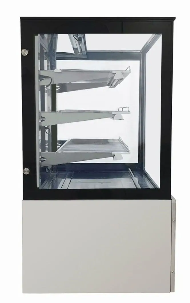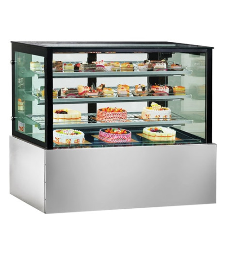 The great value Cake & Food display fridge features a compact design and high capacity. Ideal for the presentation of cakes and pastries in catering establishments and retail outlets. Measuring 1500mm wide, is finished in stainless steel and includes a powerful fan cooling system, triple-glazed safety glass, automatic defrost and heavy duty castors for manoeuvrability.