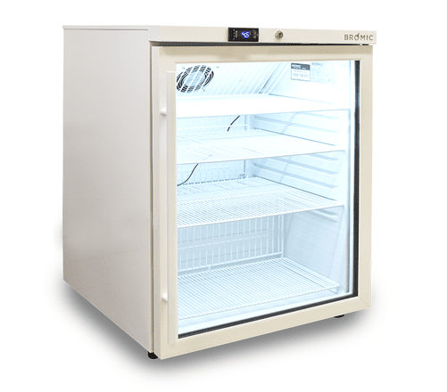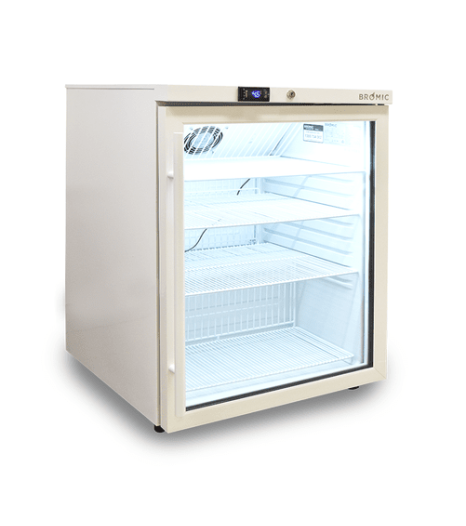 Introducing the MED0140GD Bromic MediFridge™ Display Chiller 145L. This may not be your full-sized fridge, but its features more than make up for the lack of height and limited proportion. This medical grade undercounter refrigerator optimises safe storage, thanks to its double-glazed glass panel that provides users with full interior visibility. An integrated temperature alarm system ensures sensitive stock is maintained and managed according to your establishment's storage requirements. Fan Forced air circulation ensures even temperature (2°C to 8°C) throughout the unit. Also features wire ‘open rung’ shelves at the top and bottom to prevent overstocking.