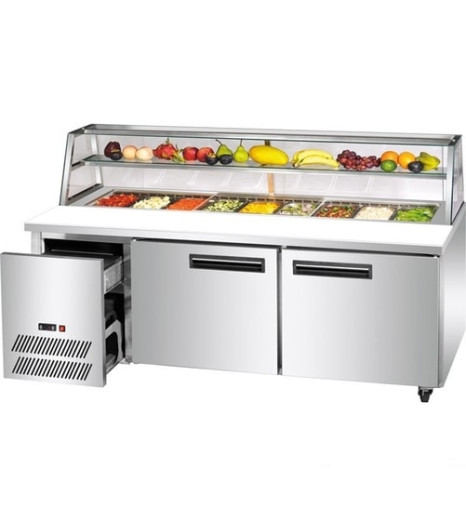 This salad and sandwich bar fridge is perfect for a Bakery, cafe or takeaway shop. Display your toppings and prepare Sandwich, Banh Mi or Salads. The stylish Glass Sneeze guard allows you to display your food to the customers, while also keeping it safe, protected and chilled. For a quality made and designed sandwich bar fridge, Melbourne businesses can rely on our team to deliver.