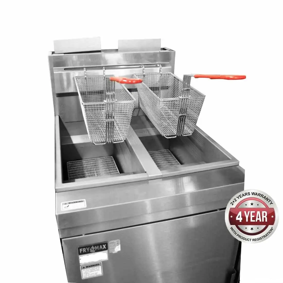A Gas Tube Twin-Vat Fryer is a commercial deep fryer that uses tube-style gas burners and has two separate oil vats in one unit.