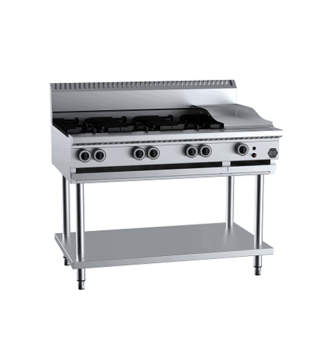 A highly efficient and powerful 31 Mj single ring burner readily meets the requirements of a demanding kitchen. Each burner is fitted with a multi-setting gas valve, enabling enhanced flame regulation. Maintenance is made easy through frontal access to all components.