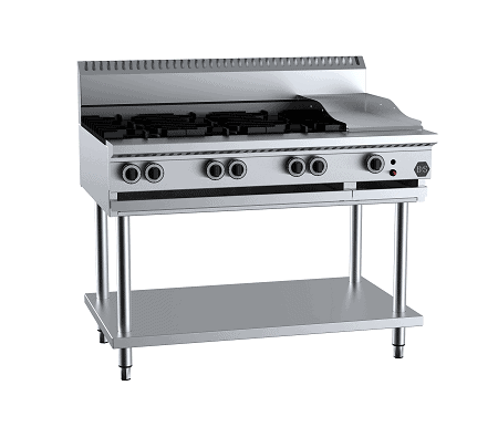 The B+S Black series standard and combination boiling top incorporates a solid stainless steel frame that’s built to last. The unit also features an open stand and under shelf, which is ideal for storing cooking utensils.